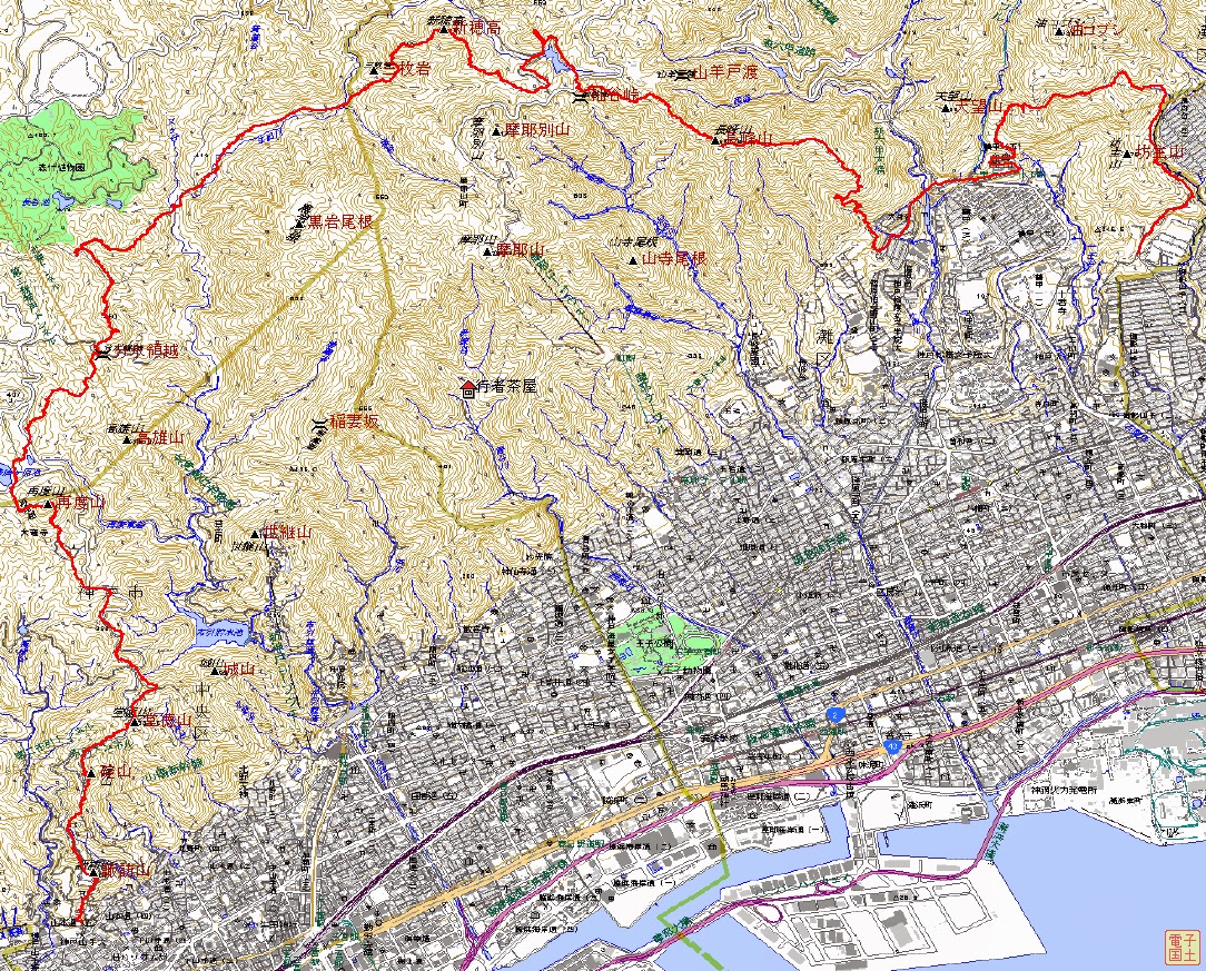 東西56km(公称)にも及ぶ六甲山系は、多種多様な山容を見せる山々が立並んでいるが、全山縦走路に於いて立寄る山はその一部でしかない。