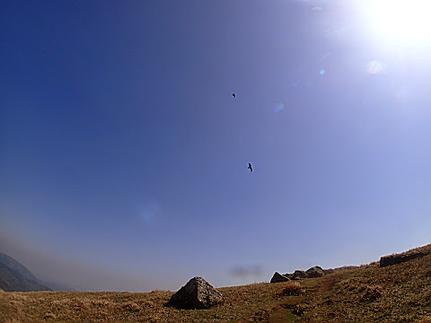 大谷山までその高原といった下草のたなびく様は美しく続き、時たま谷間に遊ぶトンビ達の姿を好ましく見つめた。
